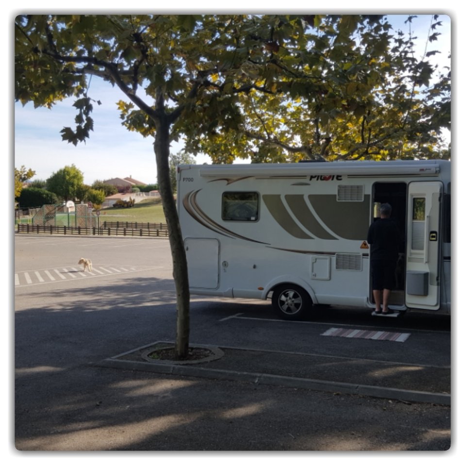 Lite lokal ställplats mellan skola och idrottsplats. Toalett som kunde varit bättre. Strövområde precis bredvid. Gratis. Position: N44°15’55” E5° 51’26” .