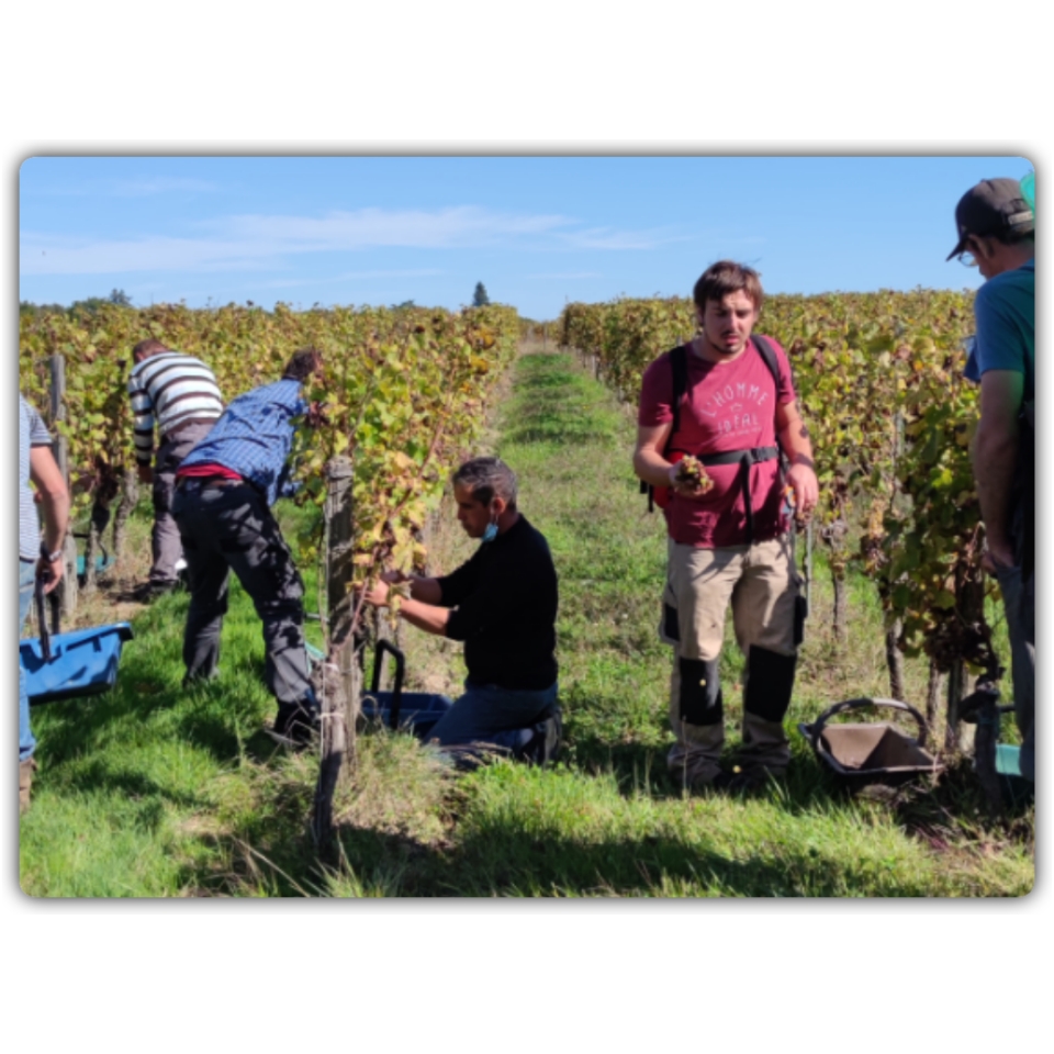 Vingård med ställplats i södra delen av Bordeaux-distriktet. Trevlig ägare som pratar bra engelska. Toalett och dusch, grillvagn och vacker omgivning. Naturligtvis kan du provsmaka deras vin och köpa. Vi fick nöjet att se på när de handplockade druvorna. Vingården ligger högt så det är en vacker utsikt. Vi rekommenderar stället. Ingår i French Passion nr 33410.