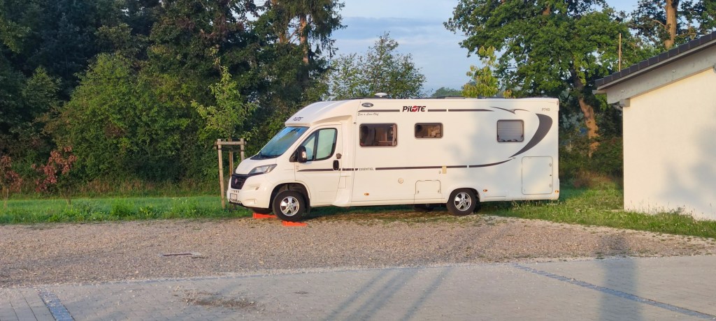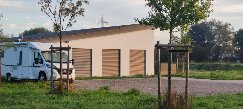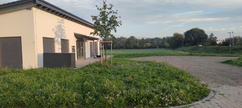 En parkering utanför en ungdomsgård eller fritidsgård. Vi frågade personalen om det gick bra att vi stod övernatten på deras parkering. En del som passerade förbi med sina hundar men i övrigt väldigt lugnt och fridfullt. Vi kom från Dachau och passerade strax före parkeringen ett fritidsområde med fiskedammar. Vid dessa är det också möjligt att ställa sig. På baksidan av fritidsgården finns dessutom en vattenkran, jag passade på att fylla några hinkar vatten.