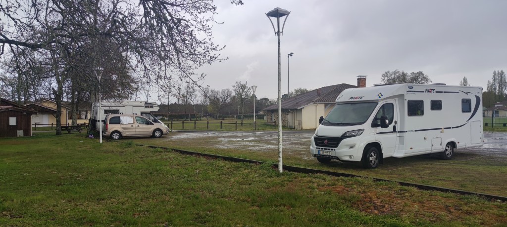 Parkeringsplats utanför en fotbollsplats. Toalett låst och inget vatten. Men ok för en natt. Dessutom små vägar att rasta hundarna på. Platsen stor nog för husvagnar.