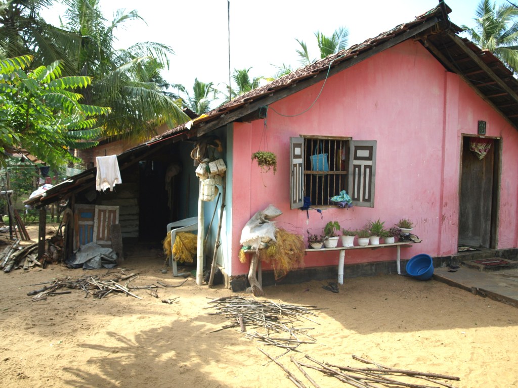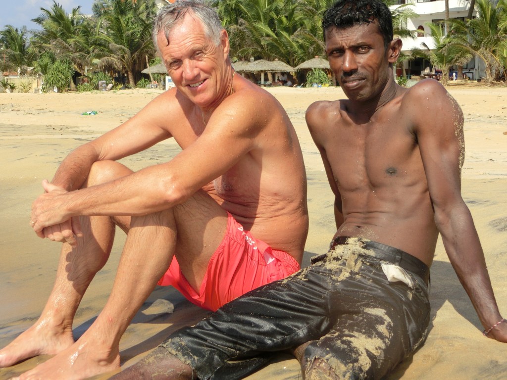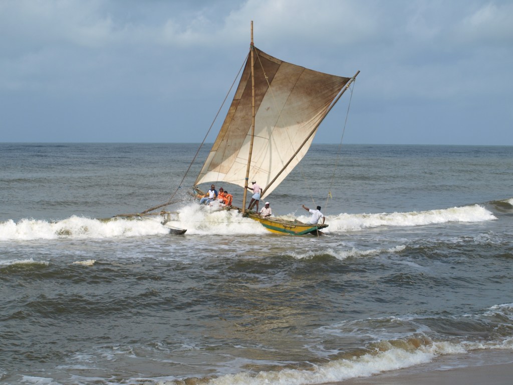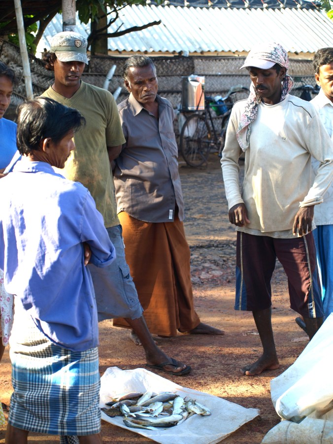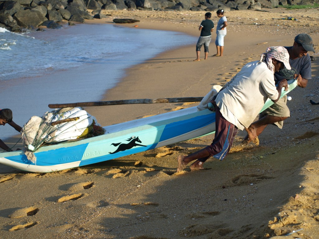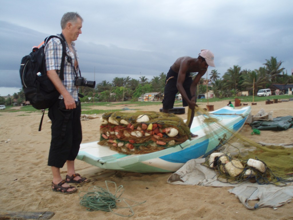 Väldigt många singaleser i det här området lever av vad fisket ger. Vid en av våra vandringar utmed havet hade vi sett en ung fiskare som satt på en båt av trästockar och lagade sina nät. Dagen innan vi skulle flyga hem såg vi honom igen, frågade om det var ok att ta ett foto, men frågade också om han hade familj och barn. Han förstod oss och förklarade med enkel engelska och teckenspråk att han hade två barn hemma.