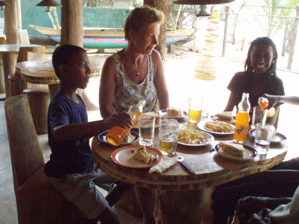 Vi tog oss till närmaste affär, frågade efter vilken rissort som singaleser köper mest av och vilken choklad som går bäst. Dessutom köpte vi lite pennor, skrivböcker och lite frukt. Med detta tog vi oss hem till hotellet för att hämta de pennor som vi fortfarande hade kvar hemifrån och gick därefter till fiskaren, som heter Nikulas. När han såg vad vi hade så ville han naturligtvis att vi skulle följa med honom hem, och ärligt talat, det ville vi också.