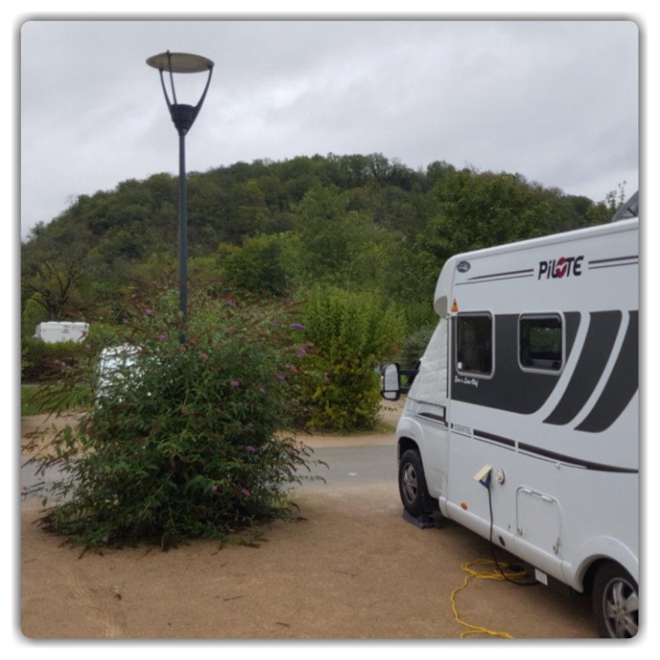 Ganska stor ställplats, bra organiserad. Brödförsäljning kl 8 varje morgon. Kallt på toa med stålsits. Kostar 11,20. Position: N47°20’24” E6°21’30”.